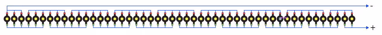 Here's how the 49 pickups are wired right now (all bobbins are wound in the same direction and all magnets are facing north pole up). I copied the Fender Rhodes and my previous homemade electric piano, so I guess this wiring is supposed to be hum-cancelling, but I'm really not sure: